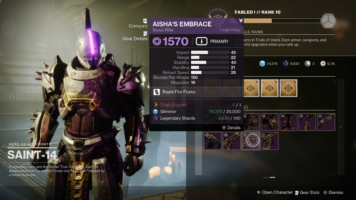 Berikut cara mendapatkan kembalinya Trials of Osiris Scout Rifle, Aisha’s Embrace, serta apa God Roll-nya.